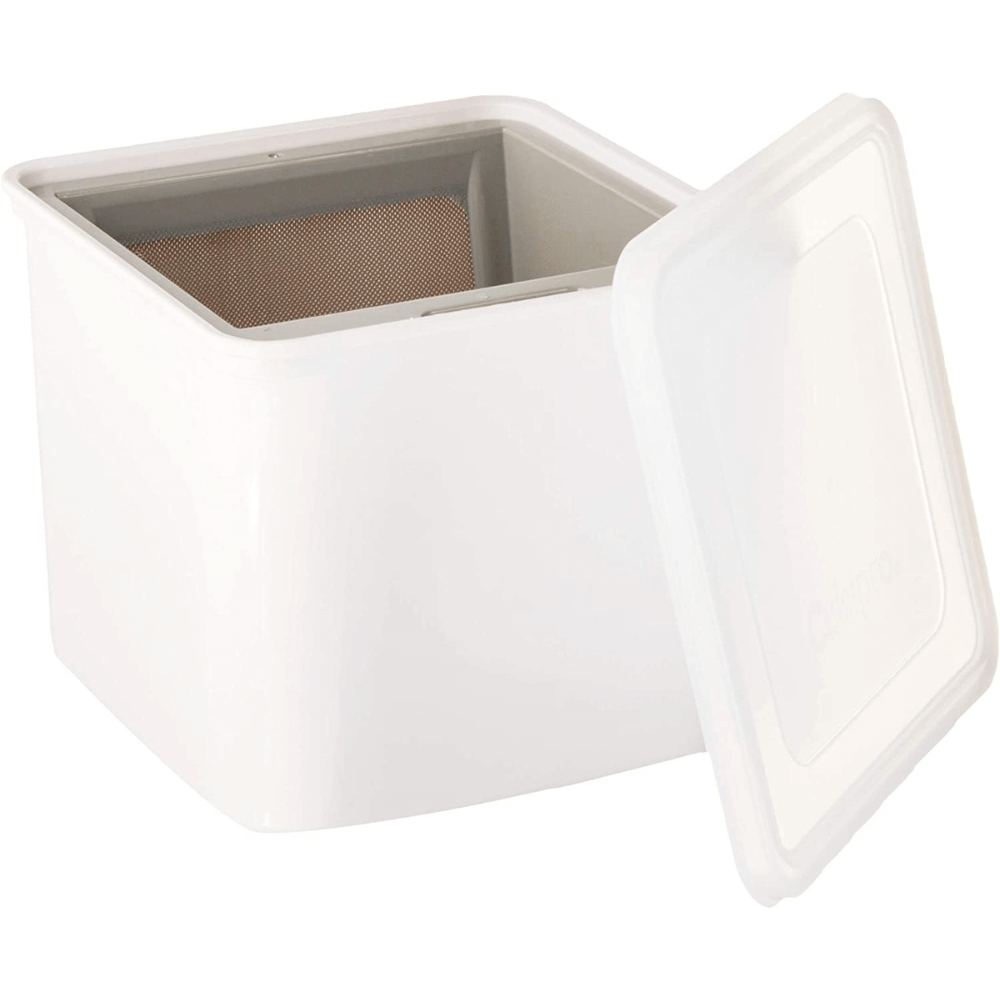 - Quality Design: Features a plastic container and stainless-steel fine-mesh strainer.